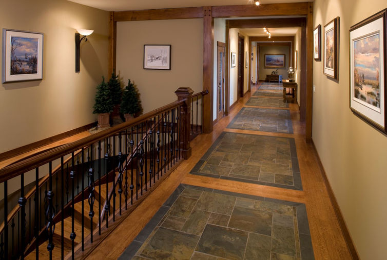 Hardwood floors with slate insets.